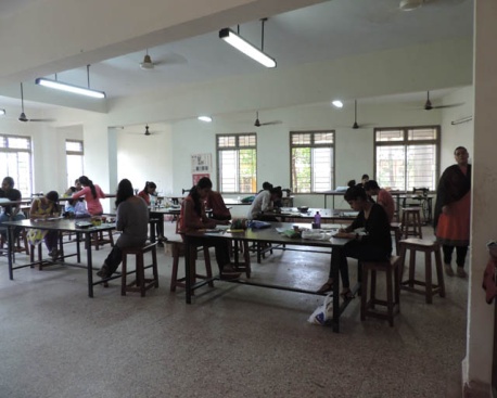 Dyeing & Printing Lab: The DP Lab is well equipped and used by students for dyeing and printing, block printing and fabric painting. The lab is also used by the Community Polytechnic for conducting practical’s in baking and personal grooming.