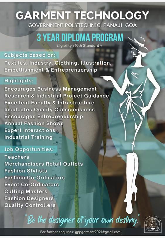 Diploma in Costume Designing and Dressmaking. BSc - Fashion Technology. M.Sc. -Fashion Technology